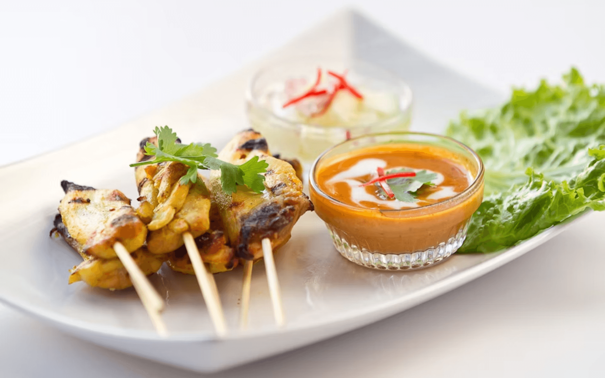 Savor our Thai favorites like Pad Thai, Pad See Iw, and Lard-Na, each crafted with flavorful noodles and fresh vegetables. Enjoy classic soups — Tom Yum Goong, Tom Yum Gai, and Tom Kha Gai — rich with lemongrass and herbs. Try Som Tum papaya salad, Nam Tok grilled beef, Yum Woon Sen glass noodle salad, and curries like Gaeng Kiew Wann, Gaeng Panaeng, and Choo Chee Pla Salmon.